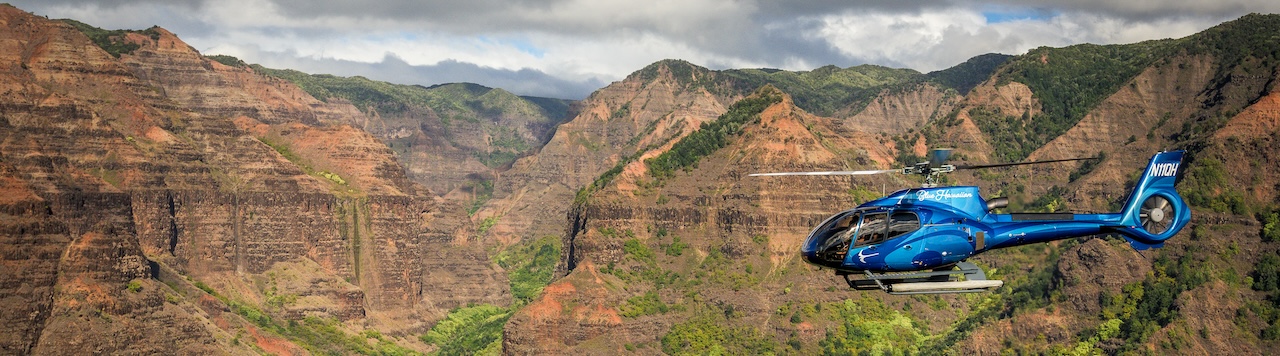 ハワイ州公認ツアーガイドでもある熟練のパイロットがツアー全体の案内役を務めます。Blue HawaiianのEco-Starヘリコプターでカウアイの神秘を満喫してください。