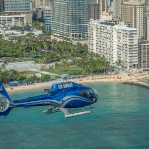 Embark on an unforgettable adventure from the luxurious The Ritz-Carlton O'ahu, Turtle Bay, soaring above Oahu's most iconic sights. Buckle up for breathtaking views of the North Shore, the remote Waianae Mountains, and historic Pearl Harbor, including the USS Arizona Memorial. The journey continues over Waikiki, Diamond Head, and the shimmering waters of Hanauma Bay. With our expert pilots guiding the way, this exhilarating helicopter tour offers a unique perspective of Oahu's stunning beauty—all from the comfort of your seat.